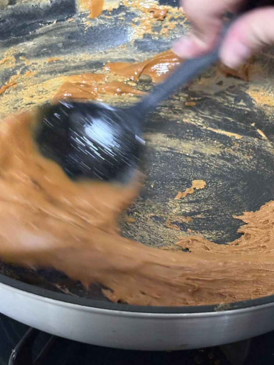 最後は火を消して早くかき混ぜ続けます。
